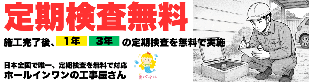 メンテナンスフリーで、カートリッジの交換なども不要なホールインワン製品を、できるだけ長く安心して利用していただけるように、ホールインワンの工事屋さんでは保証を充実させています。